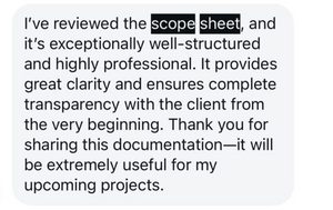 This digital scope sheet is designed to bring absolute clarity between the designer and the client.